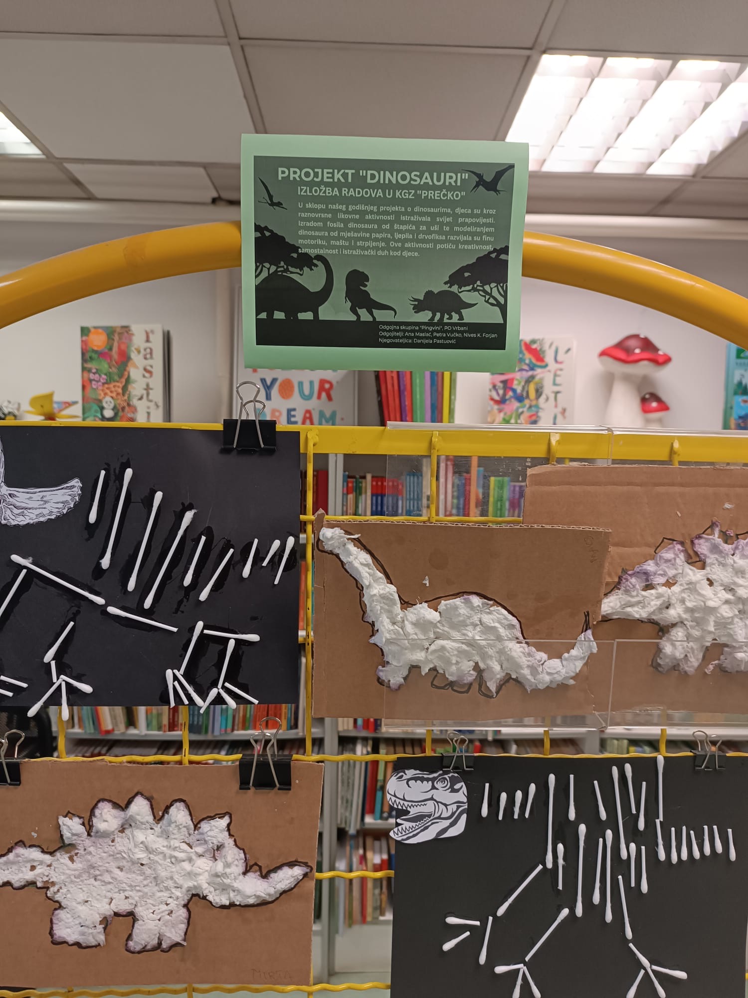 Izradom fosila dinosaura od štapića za uši te modeliranjem dinosaura od mješavine papira, ljepila i drvofiksa razvijala su finu motoriku, maštu i strpljenje. Ove aktivnosti potiču kreativnost, samostalnost i istraživački duh.