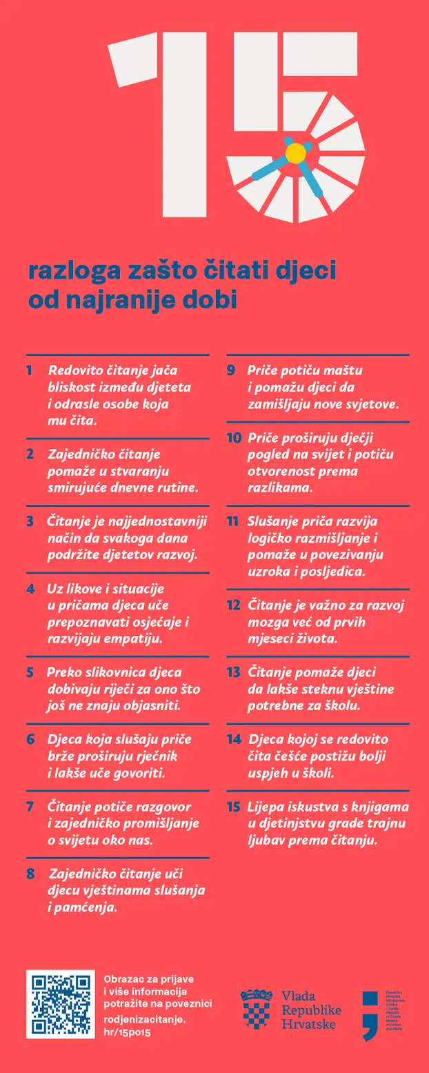 Kampanja ističe kako je 15 minuta čitanja u bilo koje doba dana vrijedna i učinkovita aktivnost koja pozitivno utječe na razvoj govora, mašte, koncentracije i emocionalne povezanosti s odraslima, stvarajući temelje za kasnije čitalačke navike.