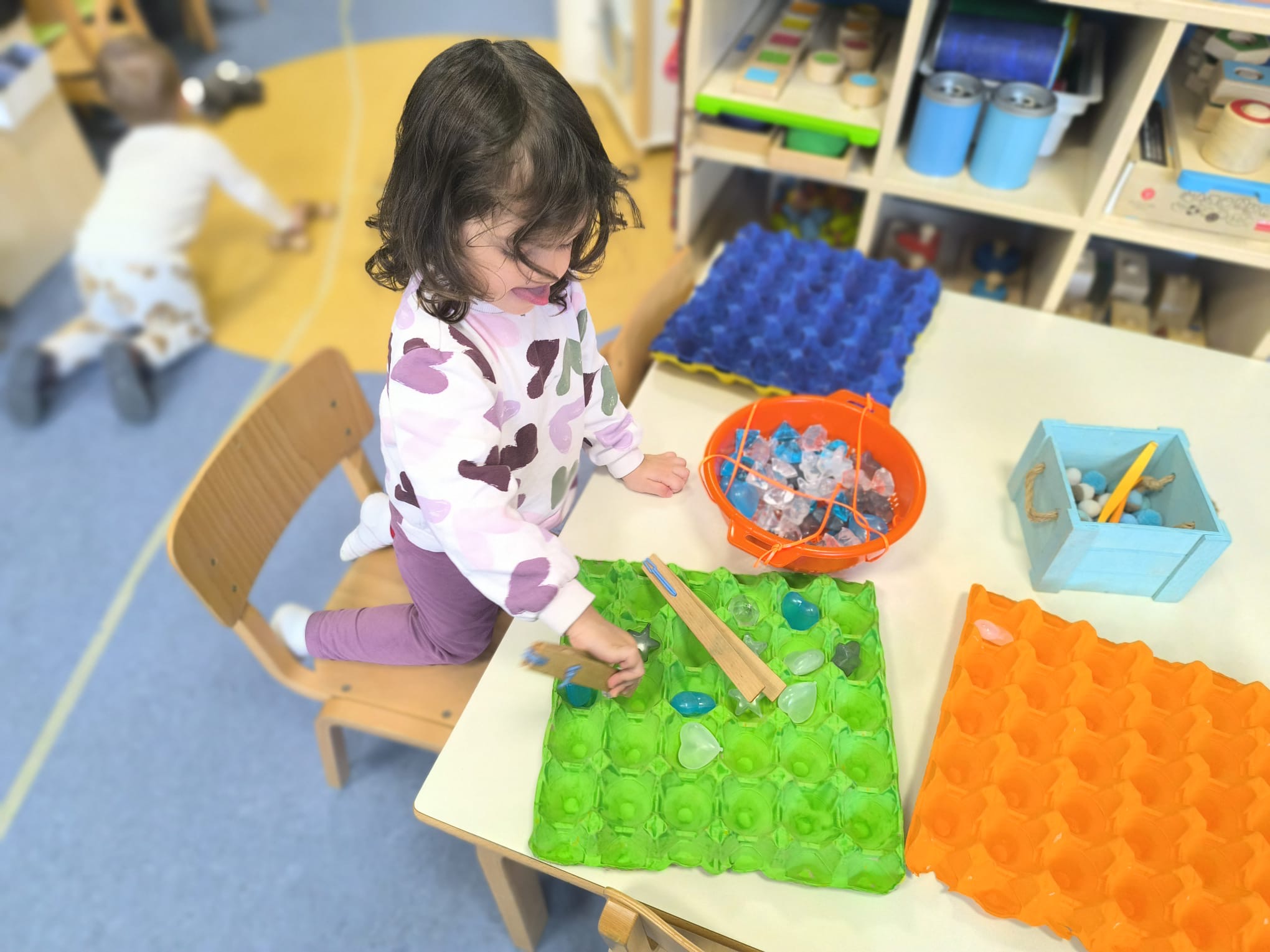 Prostori u kojima djeca borave u vrtiću su dodatno opremljeni i obogaćeni. Djeci se nude za igru i istraživanje prirodni materijali, pedagoški neoblikovani materijali, ali i didaktička oprema koja dodatno potiče senzomotorički razvoj djeteta.